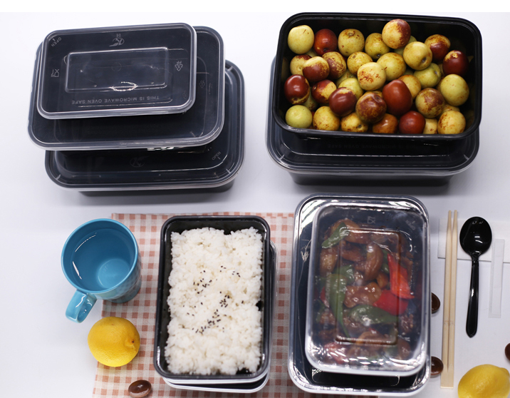 熱賣(300套裝)一次性長方形帶蓋外賣打包盒(黑色)(規格:500ml)(尺寸:11.7cm*17.2cm*3.5cm)