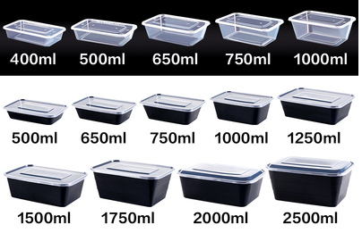 熱賣(300套裝)一次性長方形帶蓋外賣打包盒(黑色)(規格:650ml)(尺寸:11.7cm*17.2cm*4.4cm)