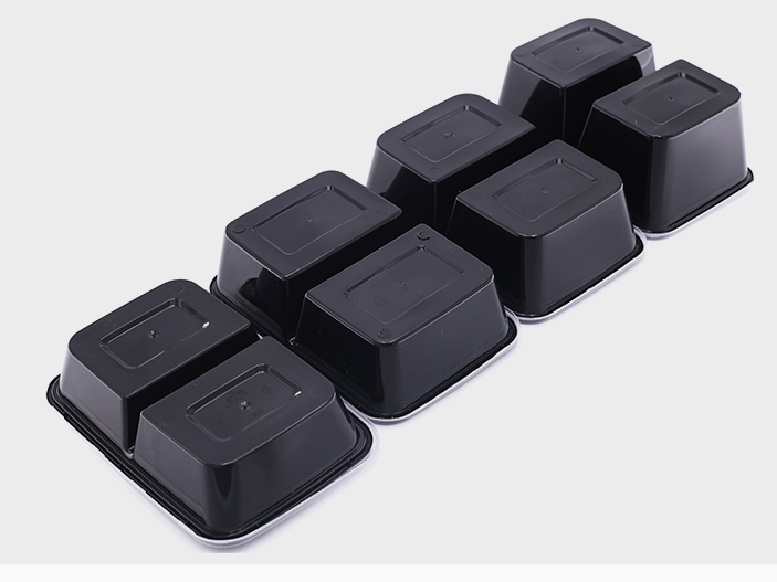 熱賣(300套裝)一次性方形雙格外賣打包餐盒(黑色)(容量:1000ml)(尺寸:17.2cm*11.6cm*6.8cm)