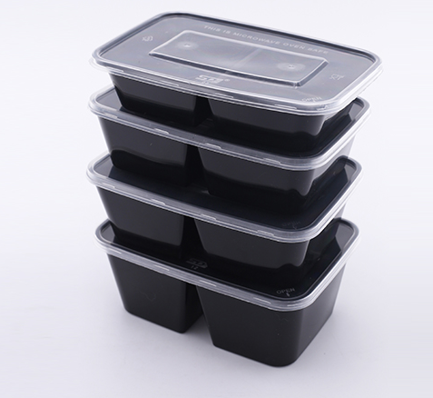 熱賣(300套裝)一次性方形雙格外賣打包餐盒(黑色)(容量:750ml)(尺寸:17.2cm*11.6cm*5.3cm)