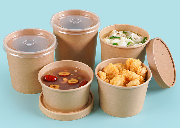 熱賣(500套裝)一次性連蓋牛皮紙圓形打包碗(牛皮紙蓋)(規格:590ml)(尺寸:11.5cm*8.8cm*9.2cm)