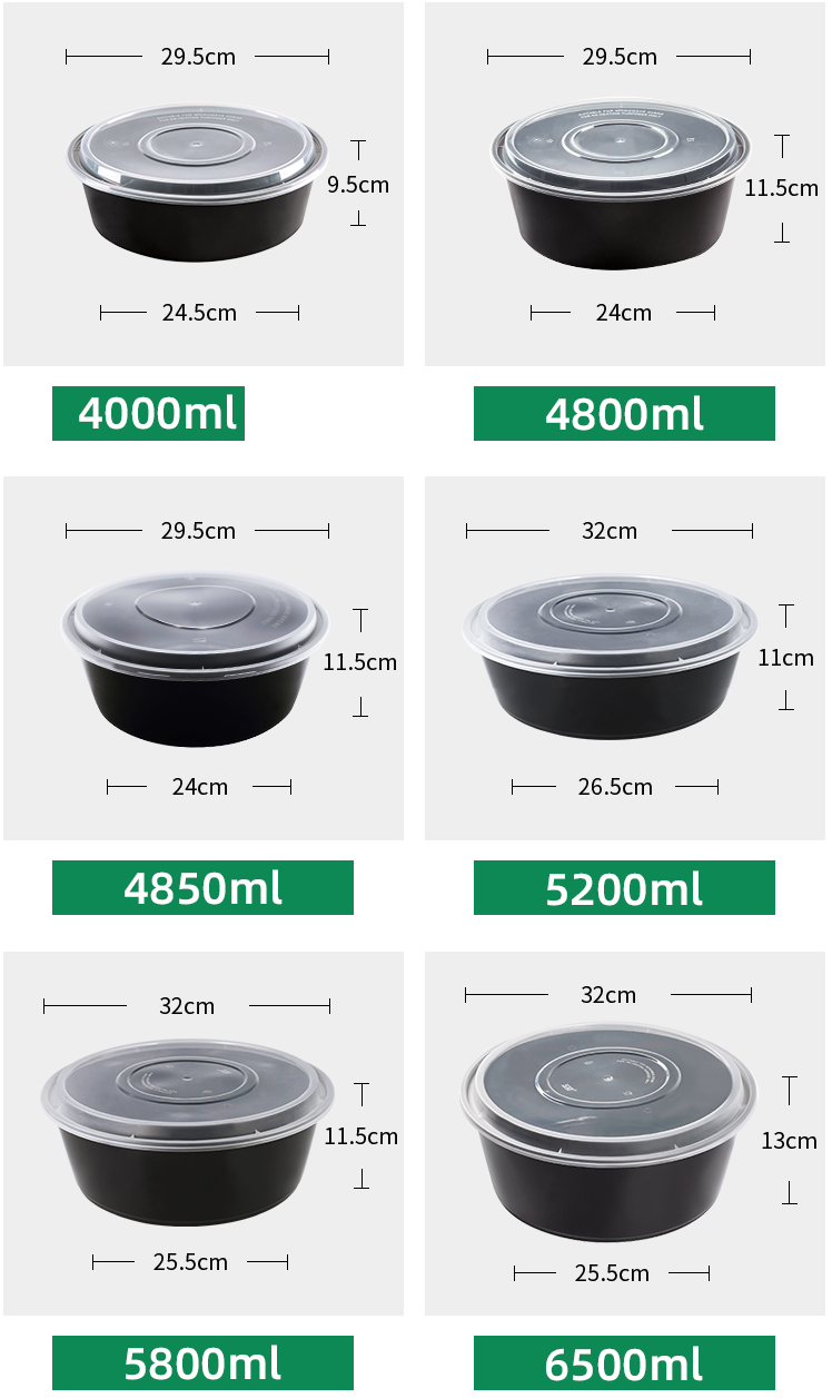 熱賣(60套裝)一次性圓形帶蓋加厚速食打包盒(透明色)(規格:4850ml)(尺寸:29.5cm*11.5cm*24cm)