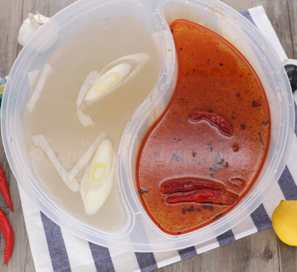 熱賣(60套裝)一次性圓形帶蓋加厚速食打包盒(白底鎖扣紅蓋)(規格:4180ml)(尺寸:23.2cm*13.4cm*18.8cm)