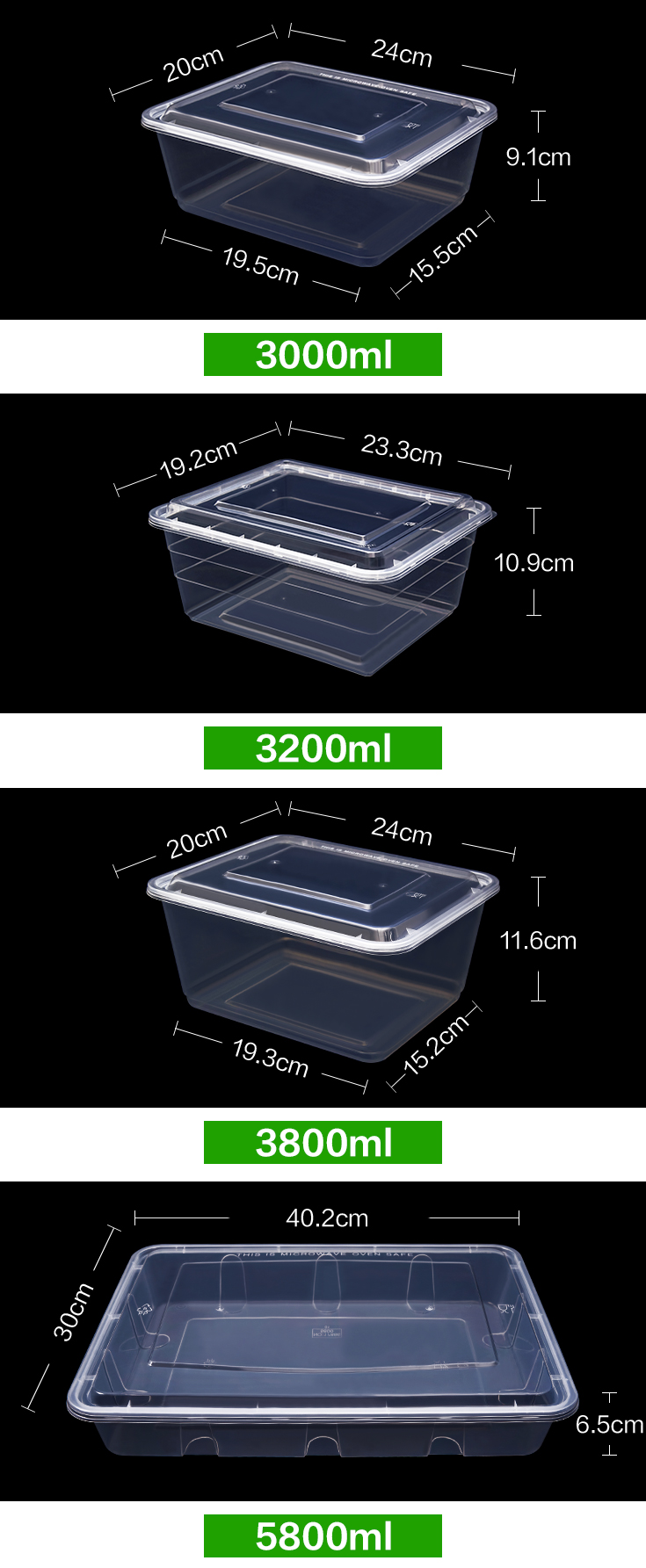 熱賣(60套裝)一次性方形帶蓋外賣打包盒(黑色)(規格:2600ml)(尺寸:24cm*20cm*8.3cm)