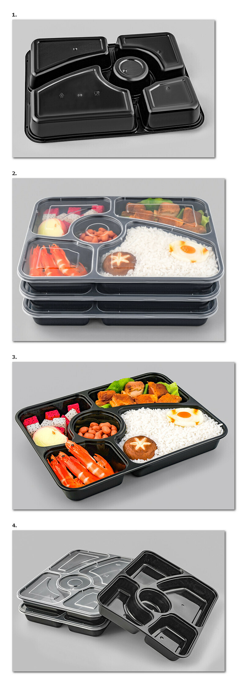 熱賣(60套裝)一次性方形外賣打包餐盒(黑色-DS六格)(容量約:1650ml)(尺寸:26.6cm*22.2cm*3.9cm)