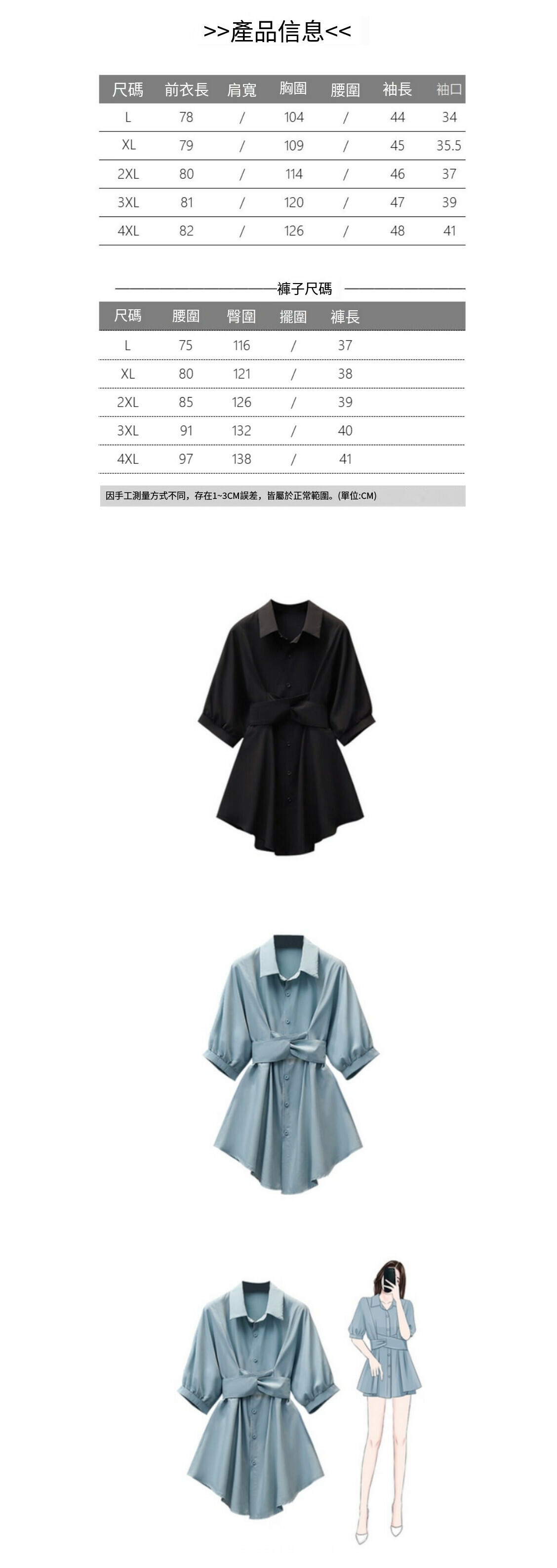 熱賣襯衫+短褲套裝【黑色】【L-4XL碼】(下單後請聯絡客服確認發貨尺碼)