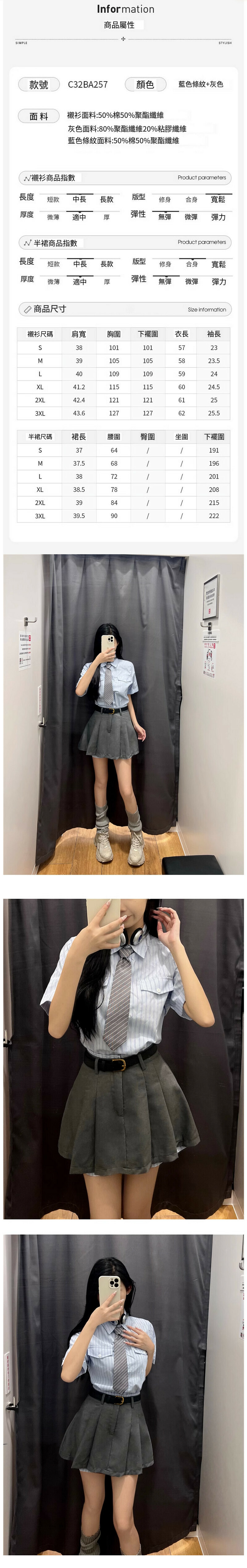 熱賣襯衣配領帶【單件】(藍色條紋 S碼-XXL碼)(下單後請聯絡客服確認發貨尺碼)