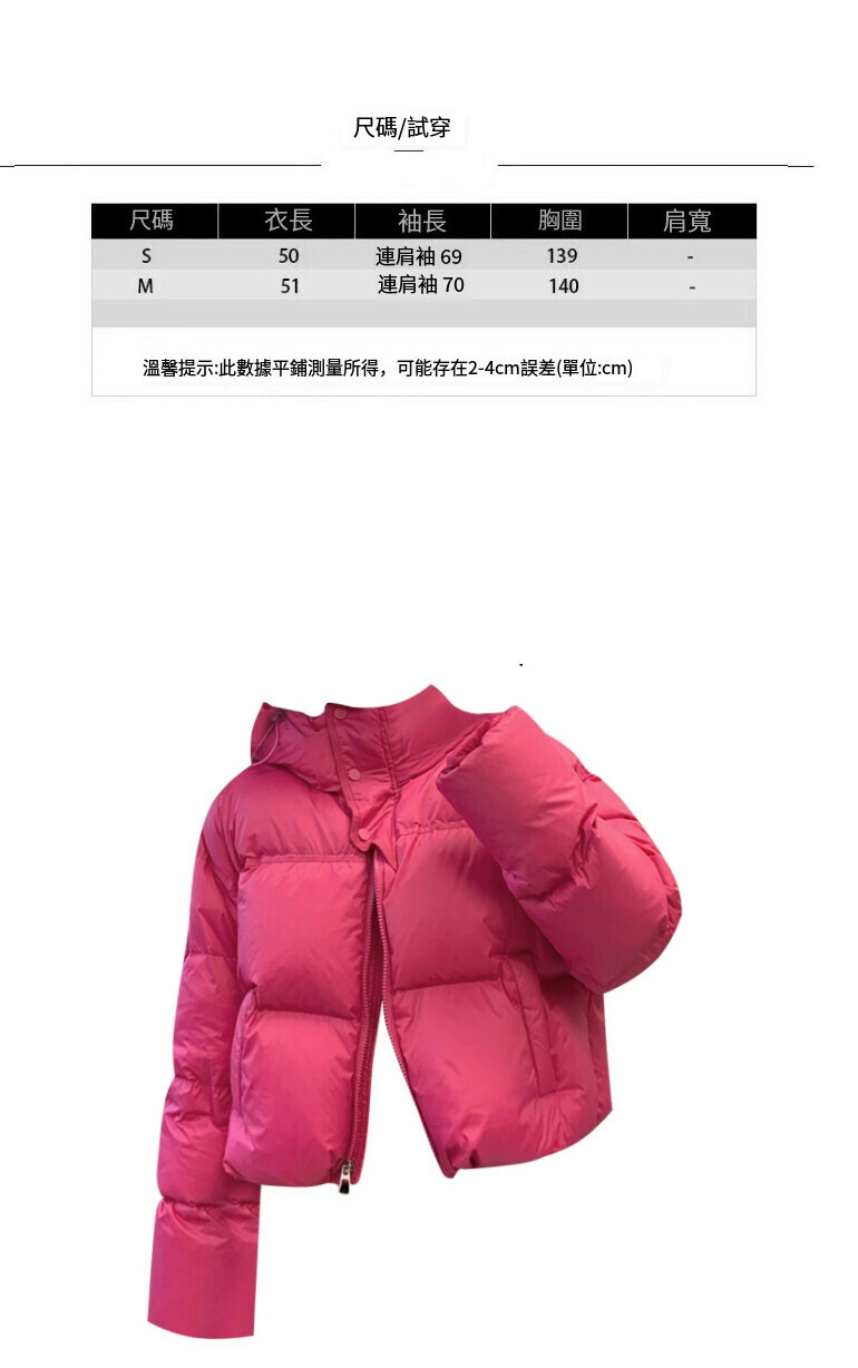 熱賣短款羽絨棉服【玖紅色】尺碼【S碼—M碼】【下單後請聯絡客服確認發貨尺碼】