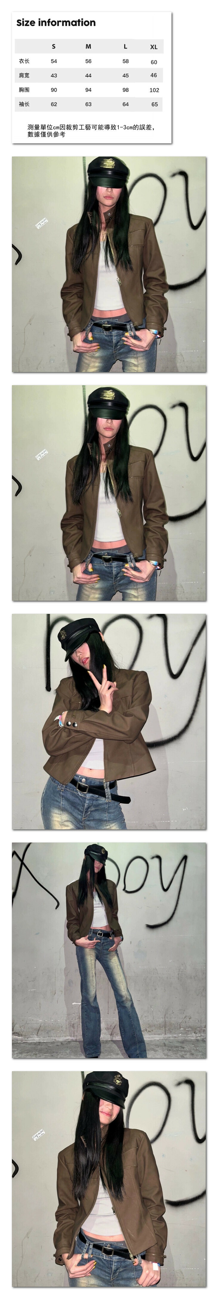 熱賣短款外套 復古修身夾克上衣(褐色)(尺碼:S/M/L/XL)(下單後聯絡客服確認發貨尺碼)