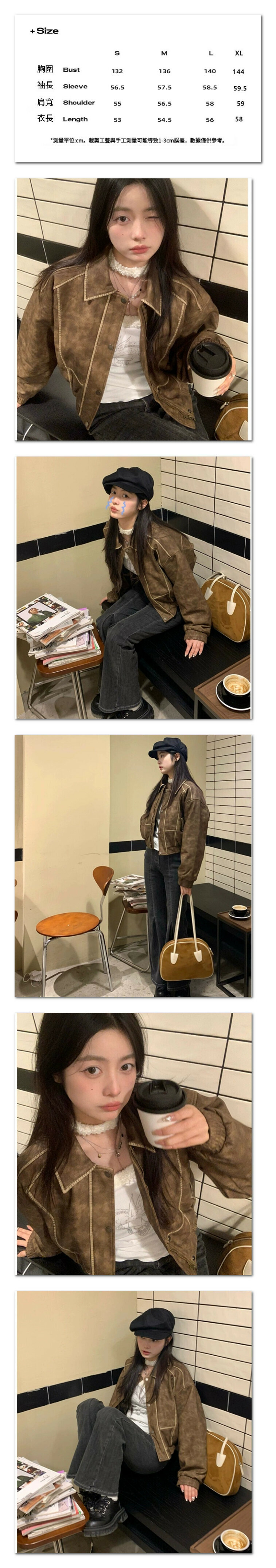 熱賣短款外套 復古水洗做舊夾克機車服 上衣(棕色)(尺碼:S/M/L/XL)(下單後聯絡客服確認發貨尺碼)