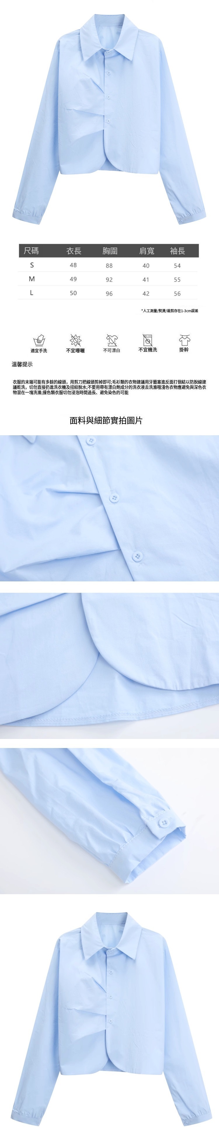 熱賣短款褶皺長袖襯衫(藍色)(S-L碼)(下單後聯絡客服確認發貨尺碼)