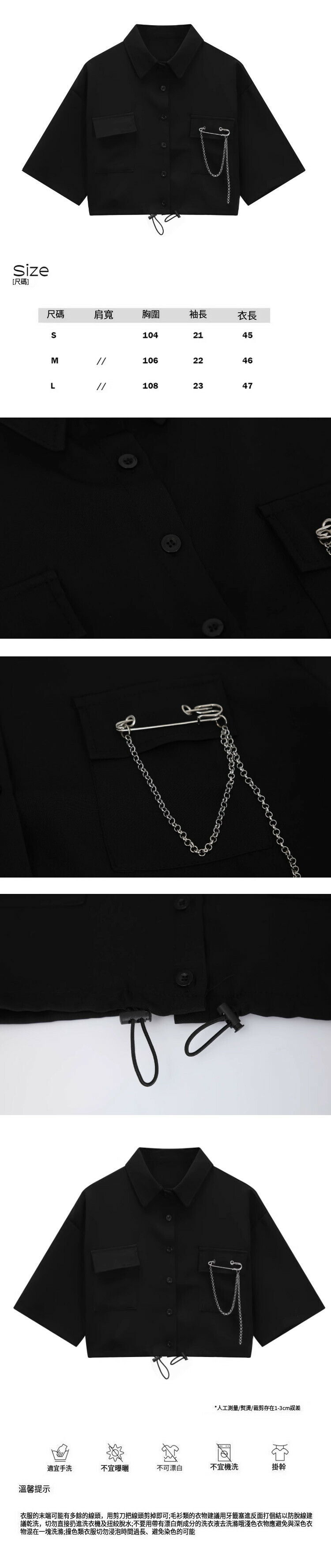 熱賣短款工裝短袖抽繩襯衫(黑色)(S-L碼)(下單後聯絡客服確認發貨尺碼)