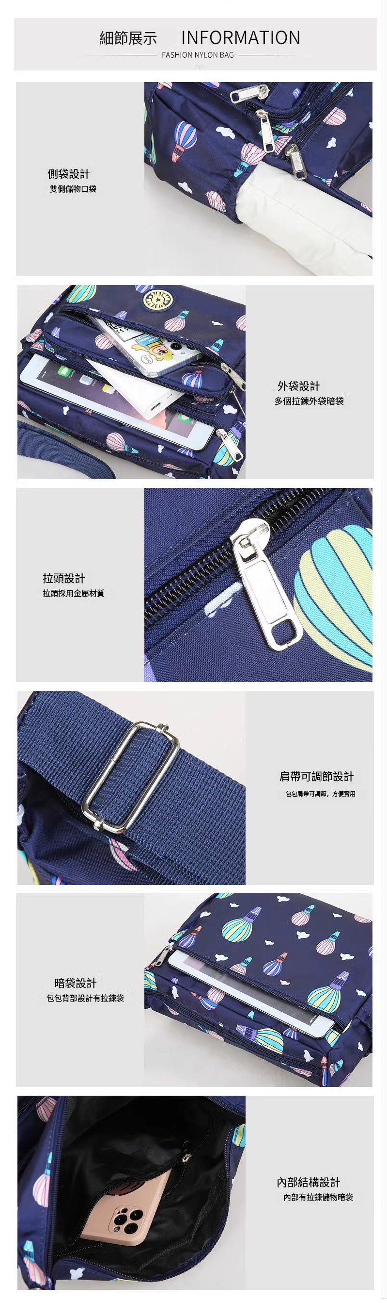 熱賣單肩包女 牛津布斜跨背包 輕便休閒時尚帆布多層包包【創意花叢】