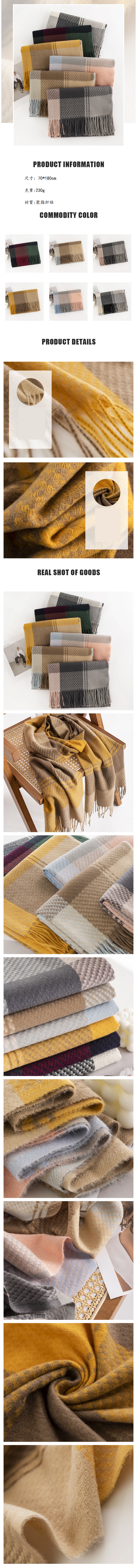 熱賣簡約大方仿羊絨圍巾(規格:方塊藍咖(尺寸:70*180CM))