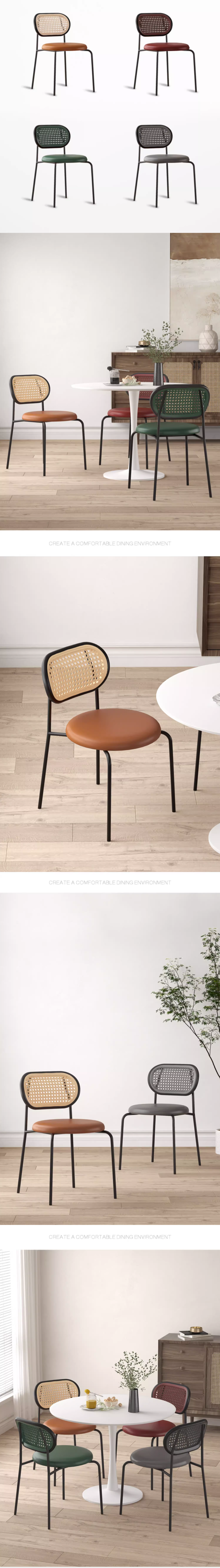 熱賣簡約靠背仿籐編椅子(灰色*淺色籐編*鐵藝椅架)(尺寸:46*51*76CM)