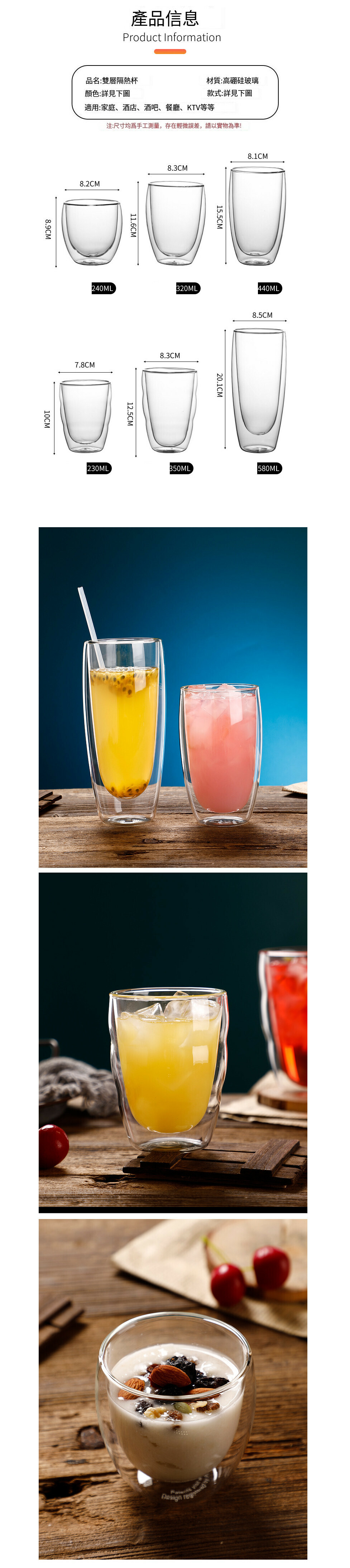 熱賣簡約雙層隔熱透明玻璃杯(雙層杯240ml-【2個裝】)