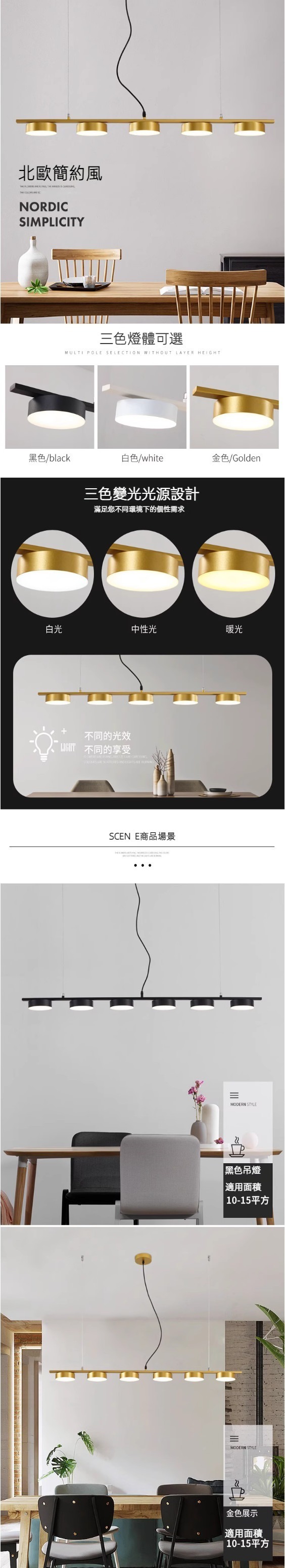 熱賣簡約長條LED吊燈(6頭黑色/單色白光)