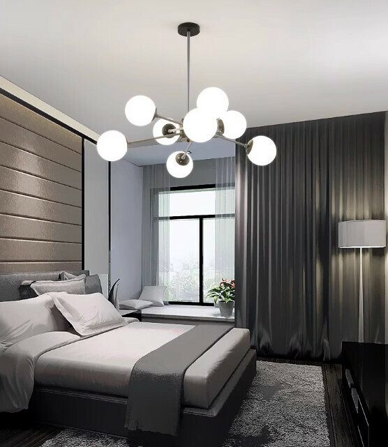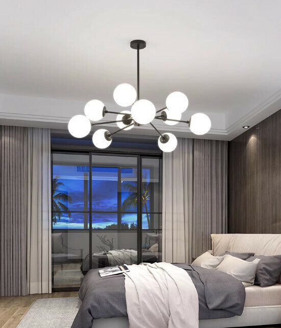 熱賣簡約分子魔豆吊燈(10頭黑色/暖光)
