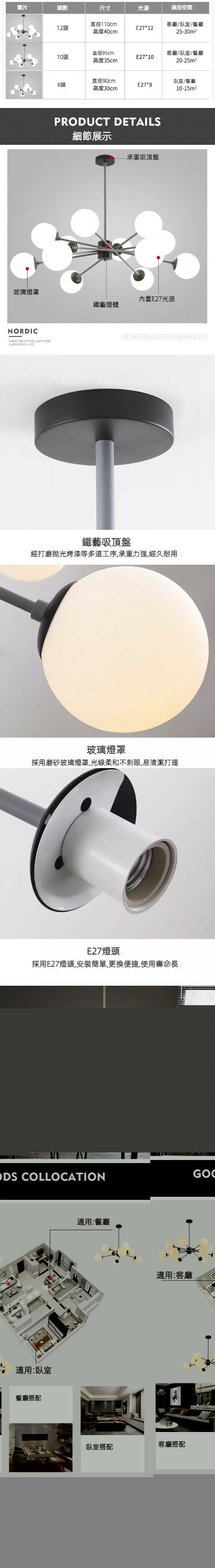 熱賣簡約分子魔豆吊燈(8頭黑色/三色光)