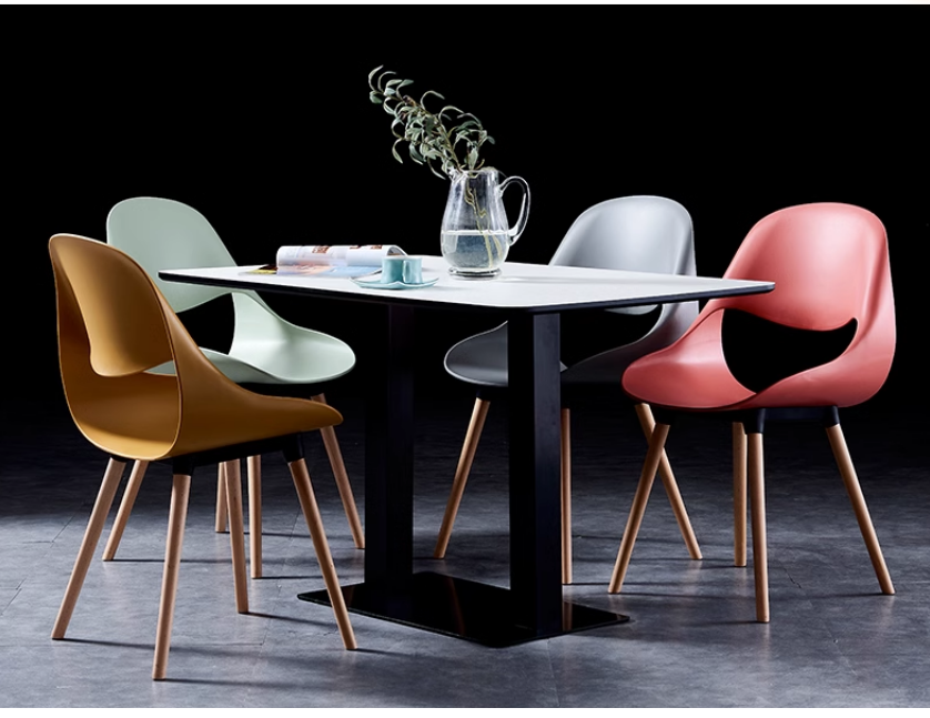 熱賣簡約實木椅腿塑料靠背餐椅(白色)(尺寸:47*47*86CM)