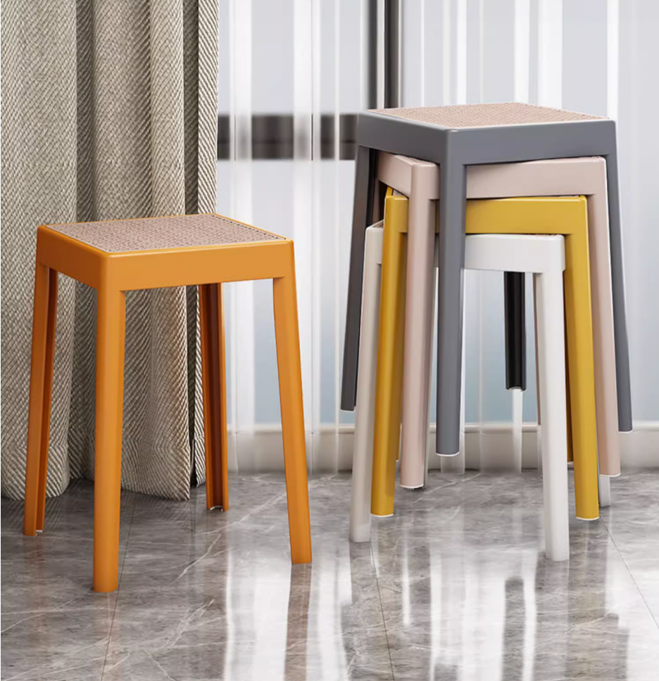 熱賣簡約加厚塑料方形凳子(紅色【木紋坐面】)(尺寸:高46CM,坐寬29CM)