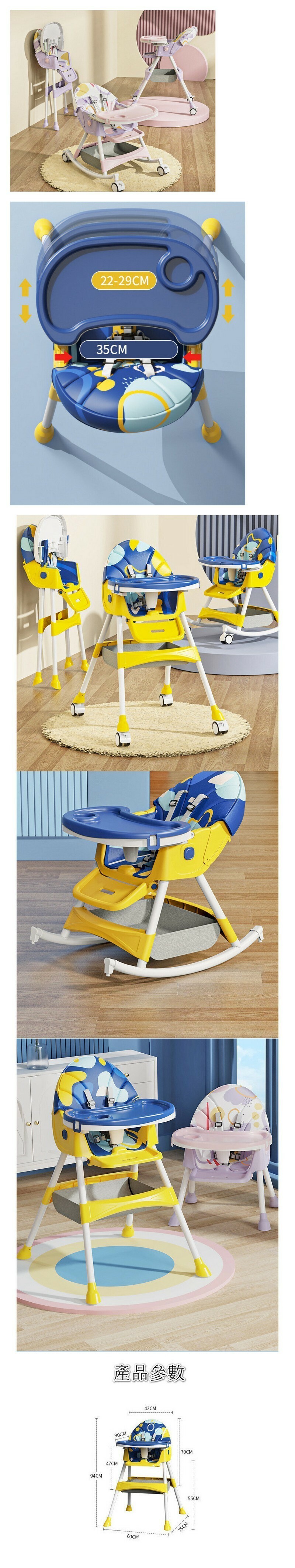 熱賣(單個裝)多功能嬰兒餐椅【(塗鴉款深藍色)雙餐盤+皮墊+輪子+搖馬】