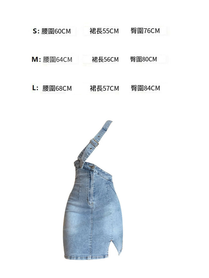 熱賣單邊吊帶開叉高腰牛仔半身裙(藍色 S碼-L碼)(下單後請聯絡客服確認發貨尺碼)