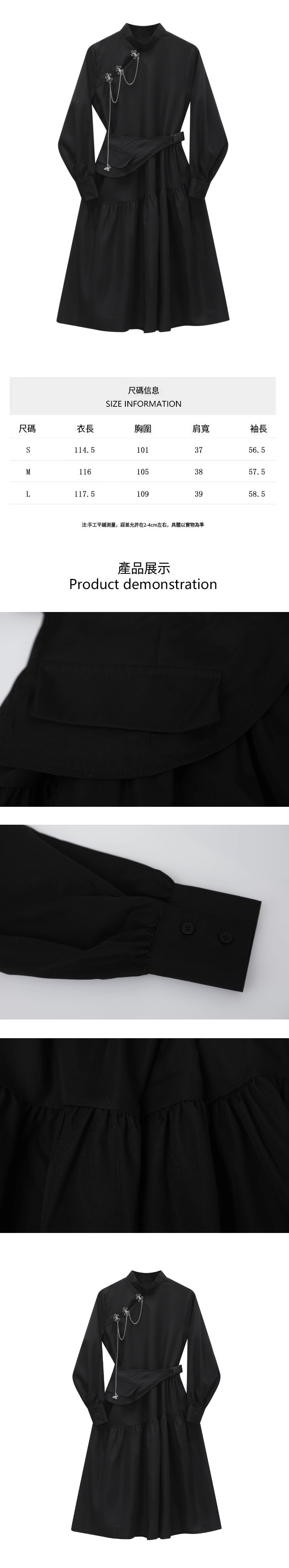 熱賣斜襟鏈條長袖中長裙(黑色)(S-L碼)(下單後聯絡客服確認發貨尺碼)
