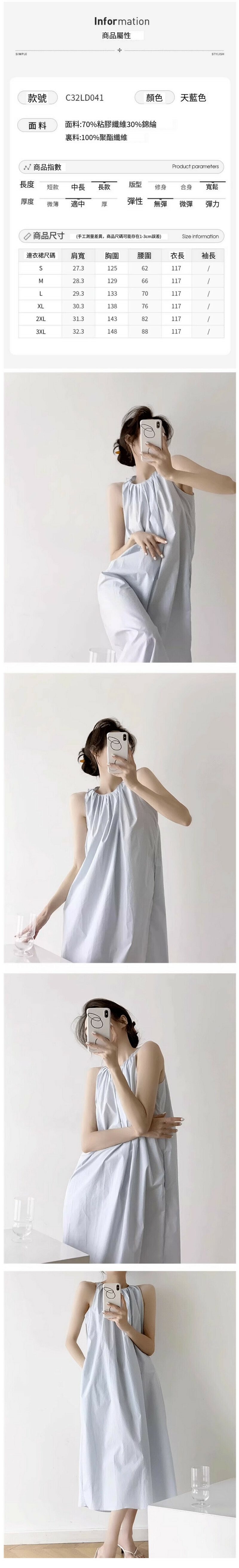熱賣無袖掛脖連衣裙(天藍色 S碼-XXL碼)(下單後請聯絡客服確認發貨尺碼)