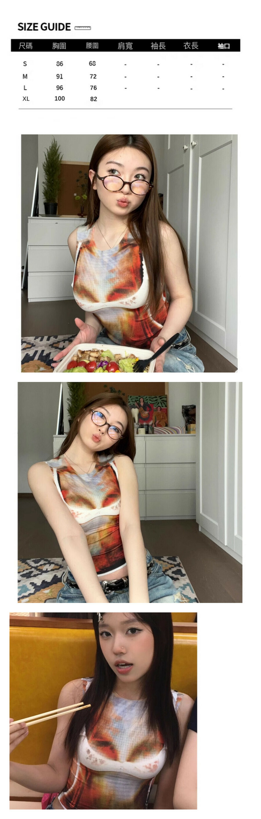 熱賣無袖短款網紗上衣【印花背心】尺碼【S碼—XL碼】【下單後請聯絡客服確認發貨尺碼】