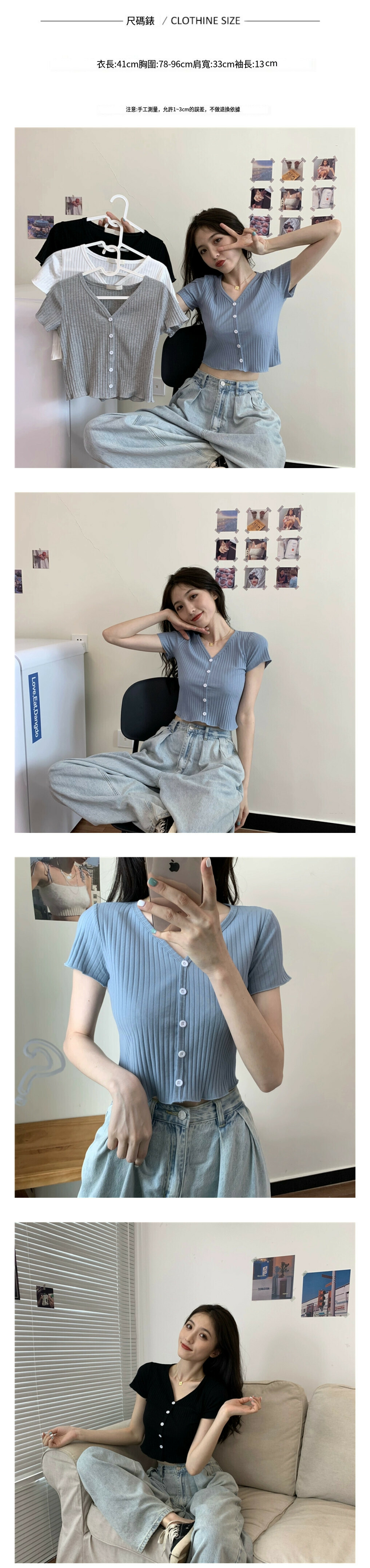 熱賣修身短款v領短袖t恤【灰色】【均碼】