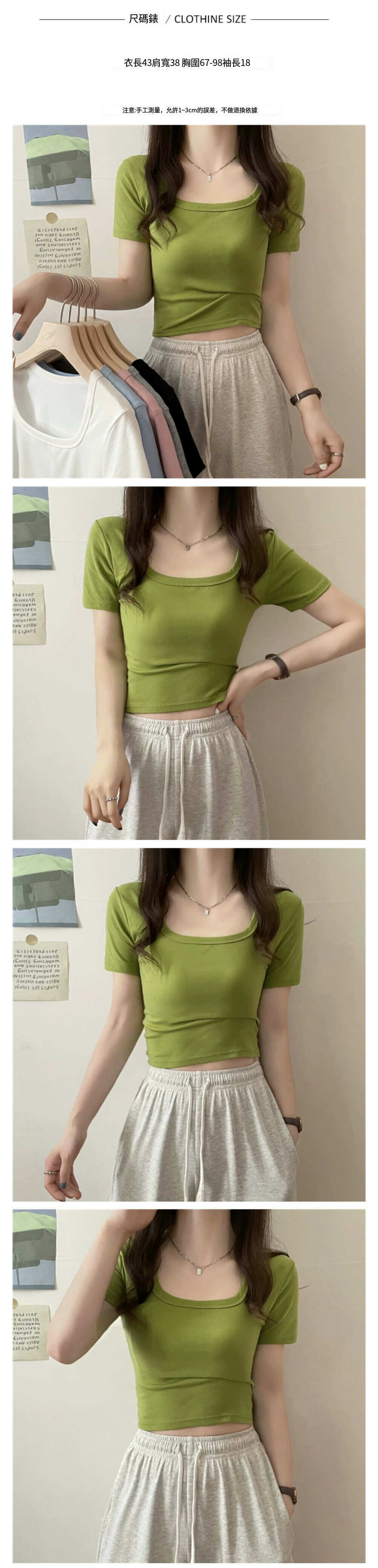 熱賣修身方領純色短袖T恤【黑色】【均碼】