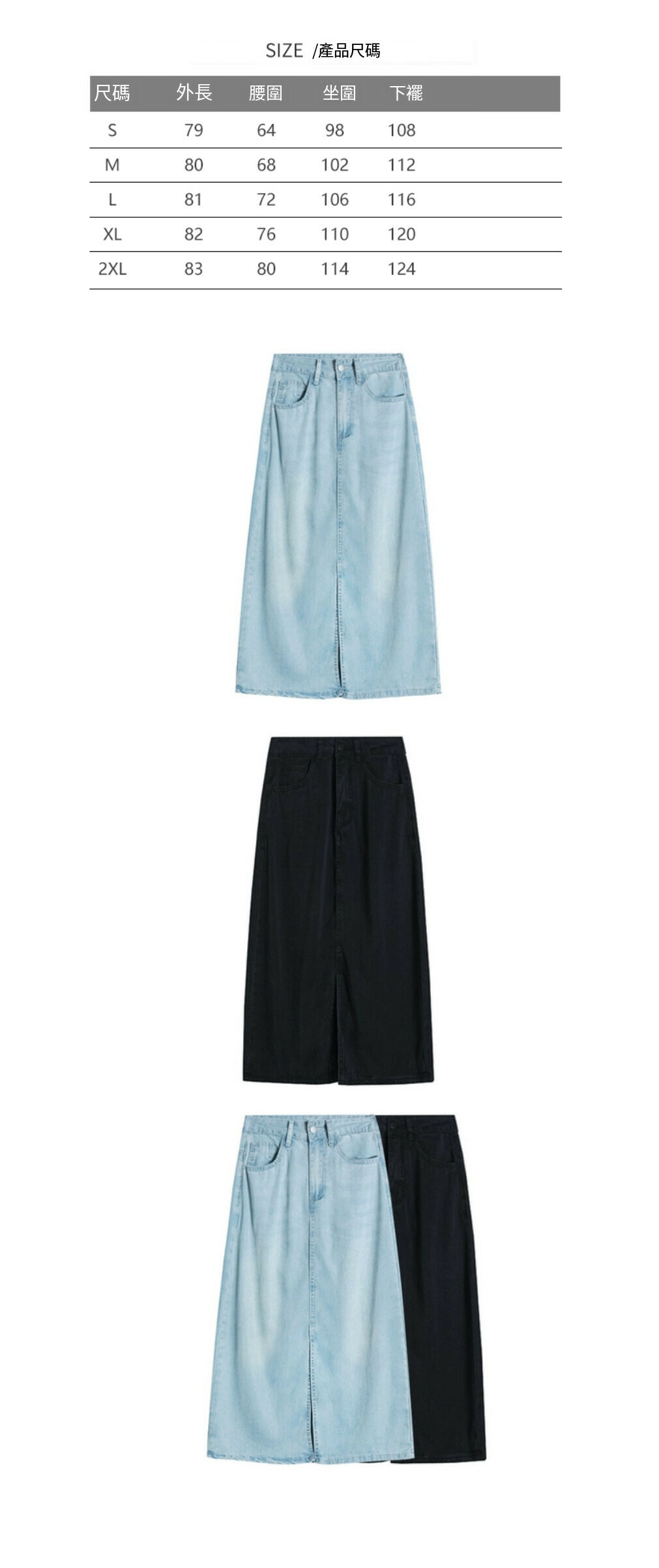 熱賣開叉牛仔半身裙【黑色】【S-2XL碼】(下單後請聯絡客服確認發貨尺碼)