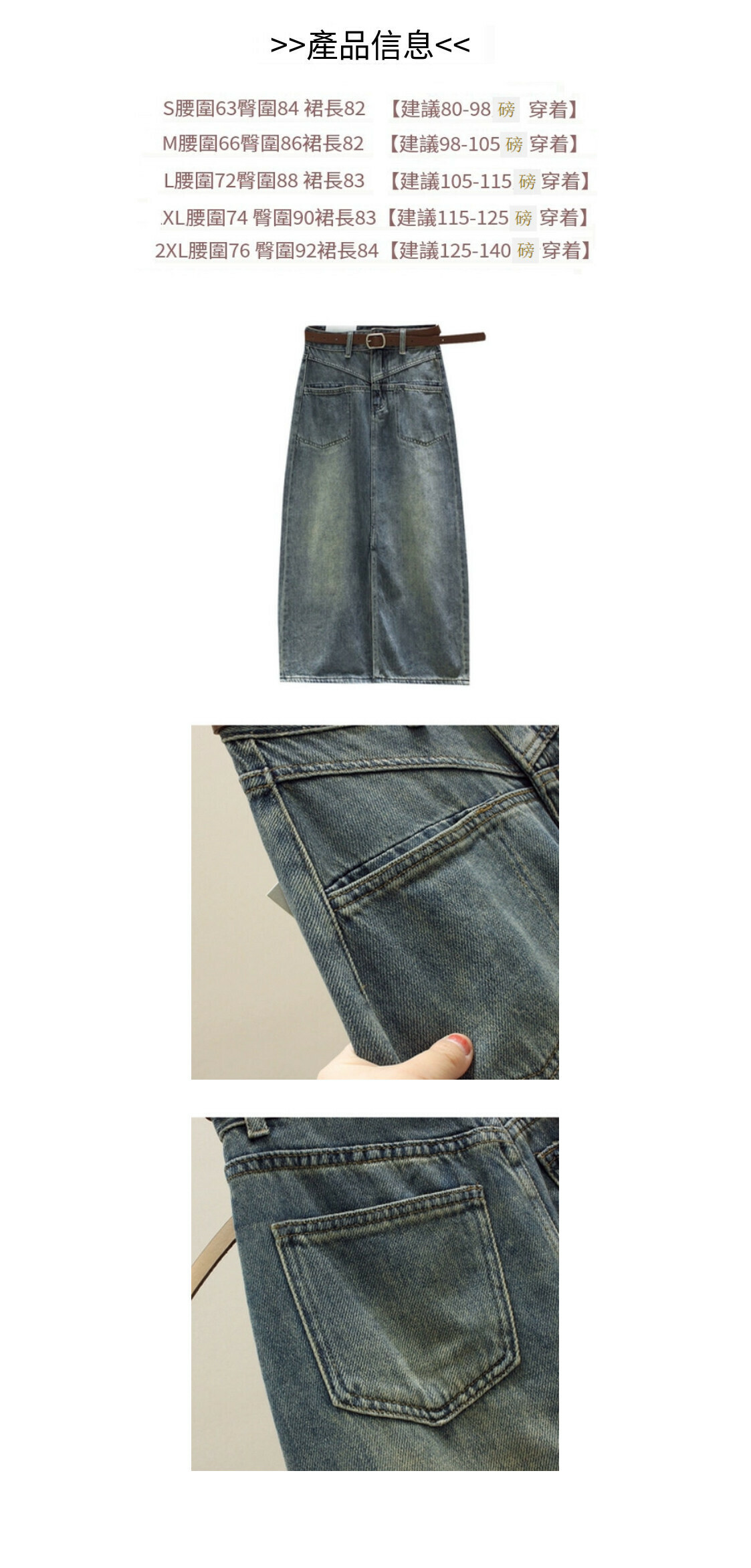 熱賣開叉牛仔半身裙【藍色(不含皮帶)】【S-2XL碼】(下單後請聯絡客服確認發貨尺碼)