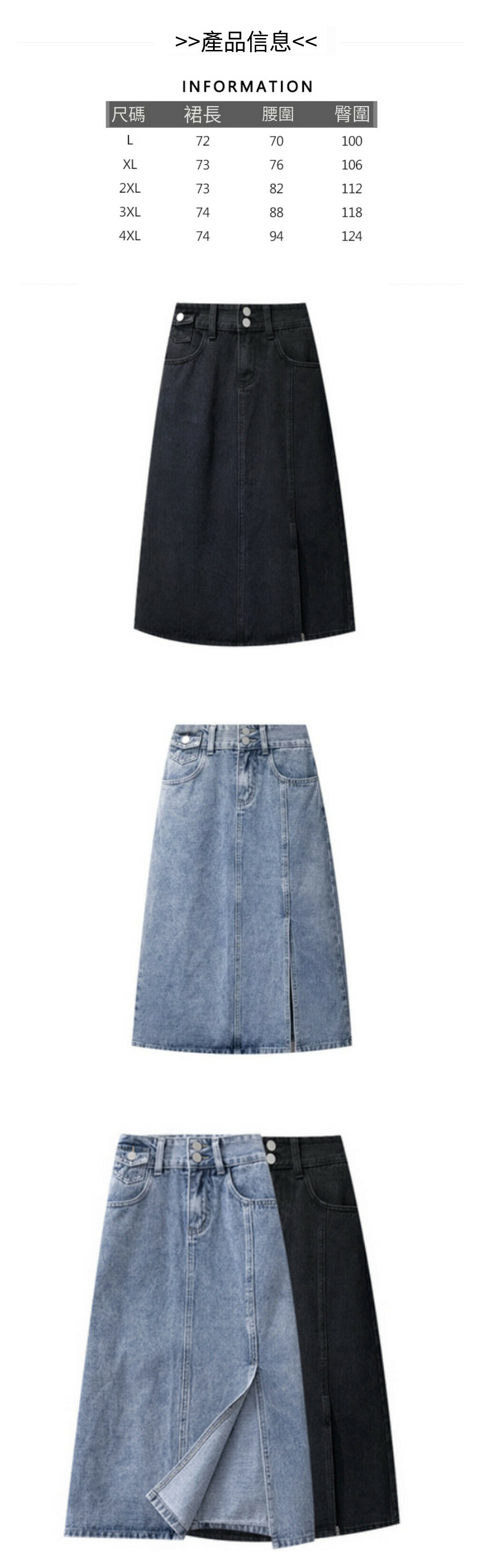 熱賣開叉牛仔半身裙【藍色】【M-4XL碼】(下單後請聯絡客服確認發貨尺碼)