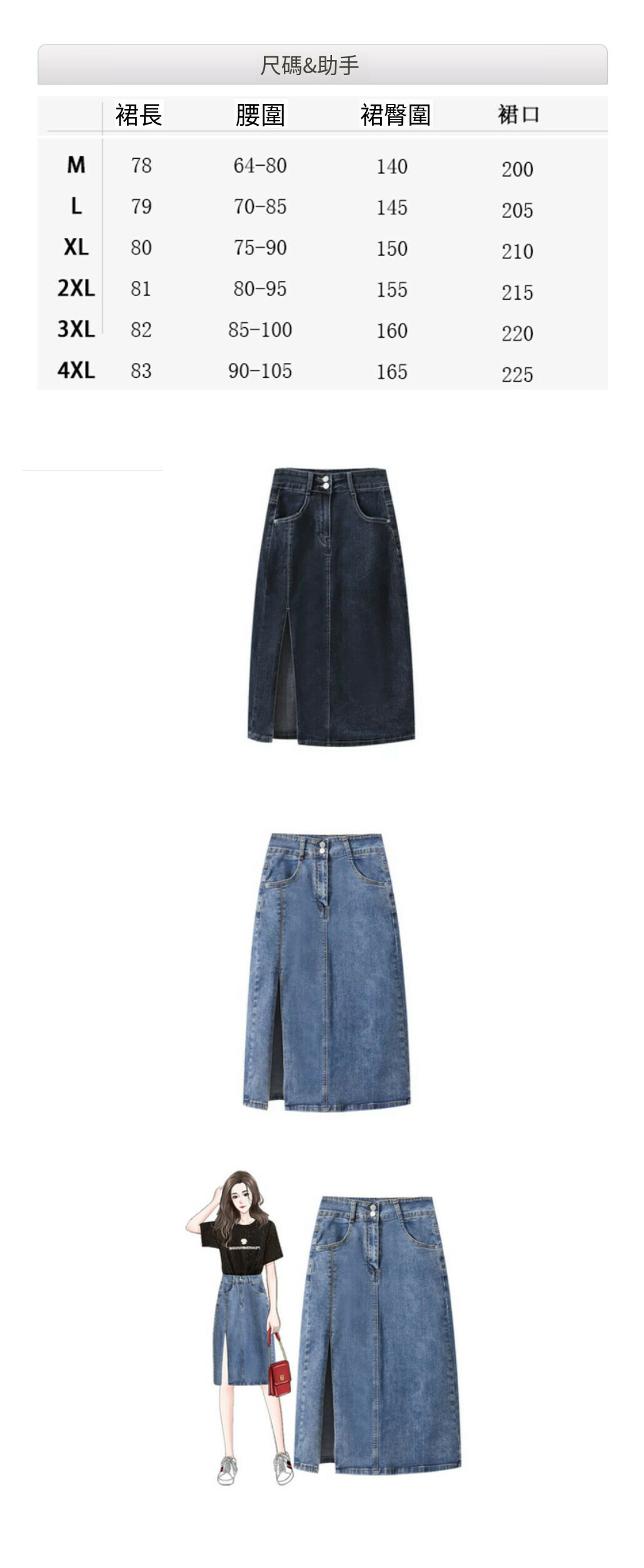 熱賣開叉牛仔半身裙【淺藍色】【M-5XL碼】(下單後請聯絡客服確認發貨尺碼)