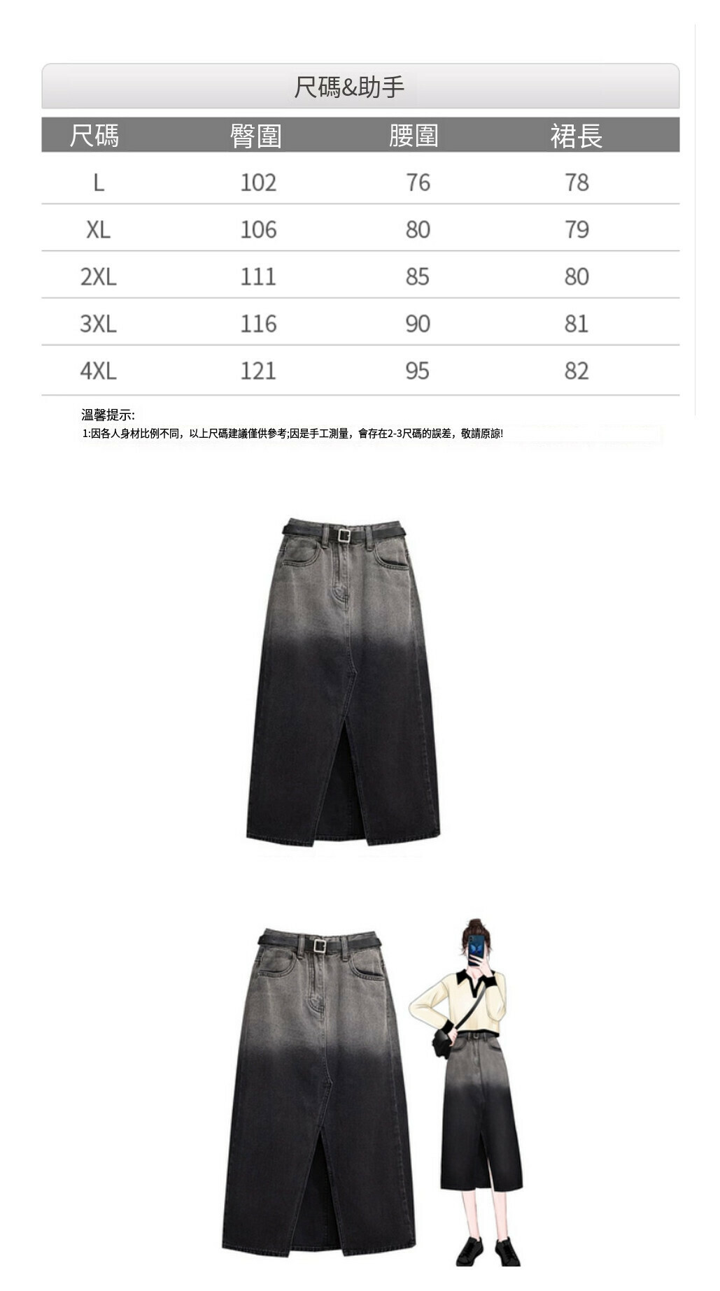 熱賣開叉漸變牛仔半身裙【黑色(不含皮帶)】【L-4XL碼】(下單後請聯絡客服確認發貨尺碼)