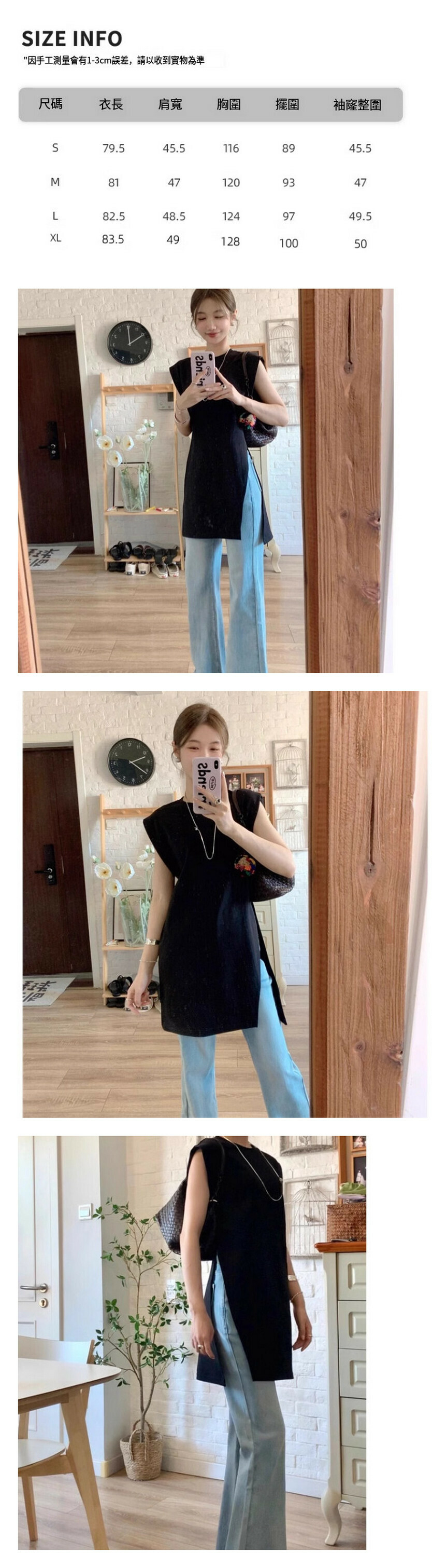 熱賣開叉圓領無袖直筒T恤【黑色】尺碼【S碼—XL碼】【下單後請聯絡客服確認發貨尺碼】
