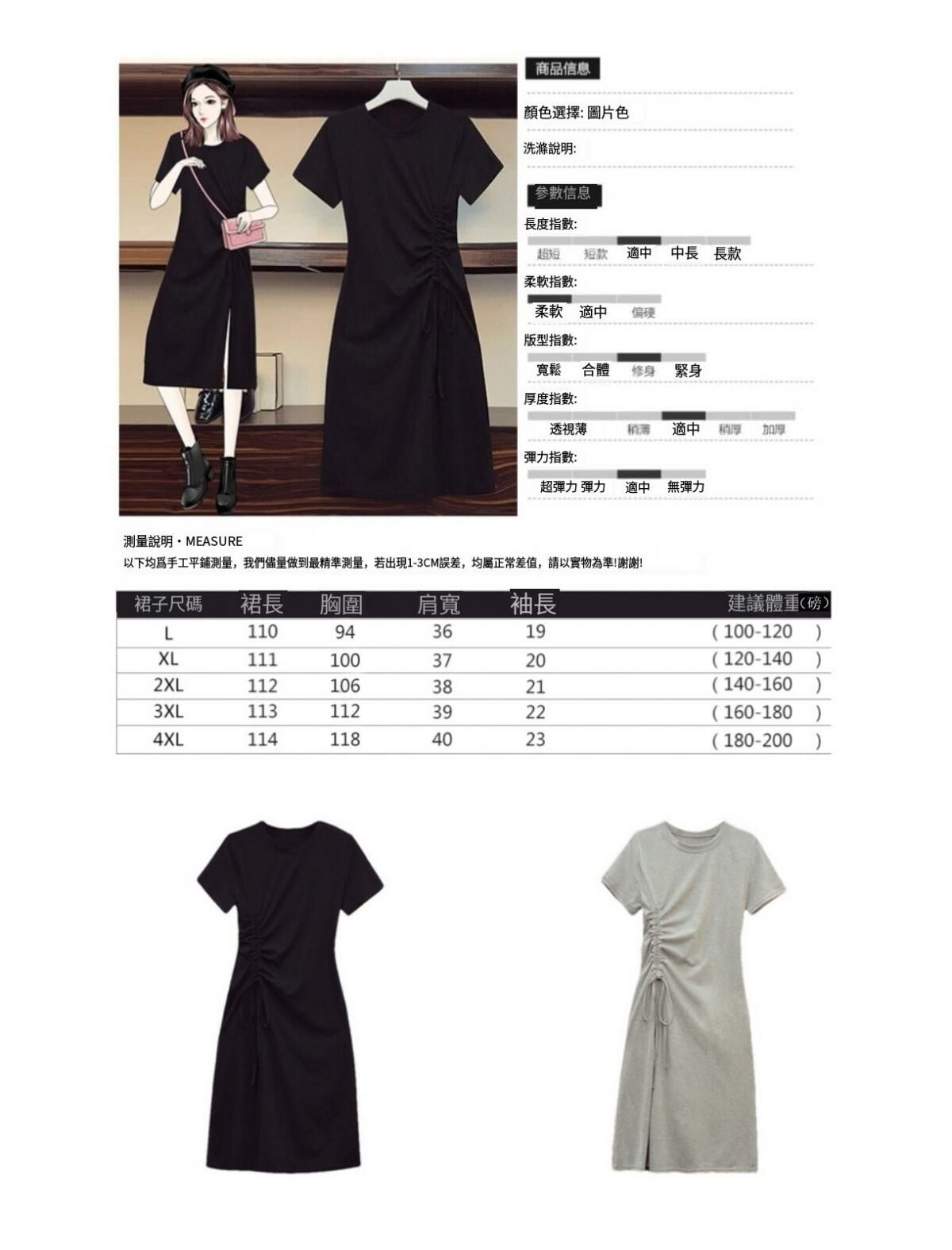 熱賣開叉短袖連衣裙【黑色】【M-3XL碼】(下單後請聯絡客服確認發貨尺碼)