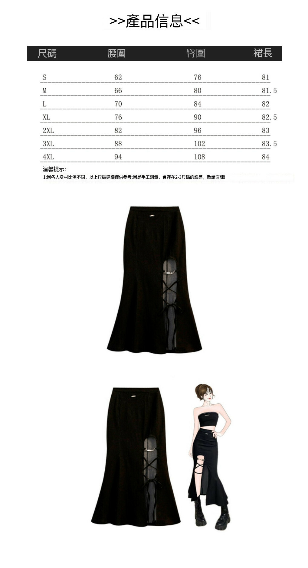 熱賣開叉半身裙【黑色】【S-4XL碼】(下單後請聯絡客服確認發貨尺碼)