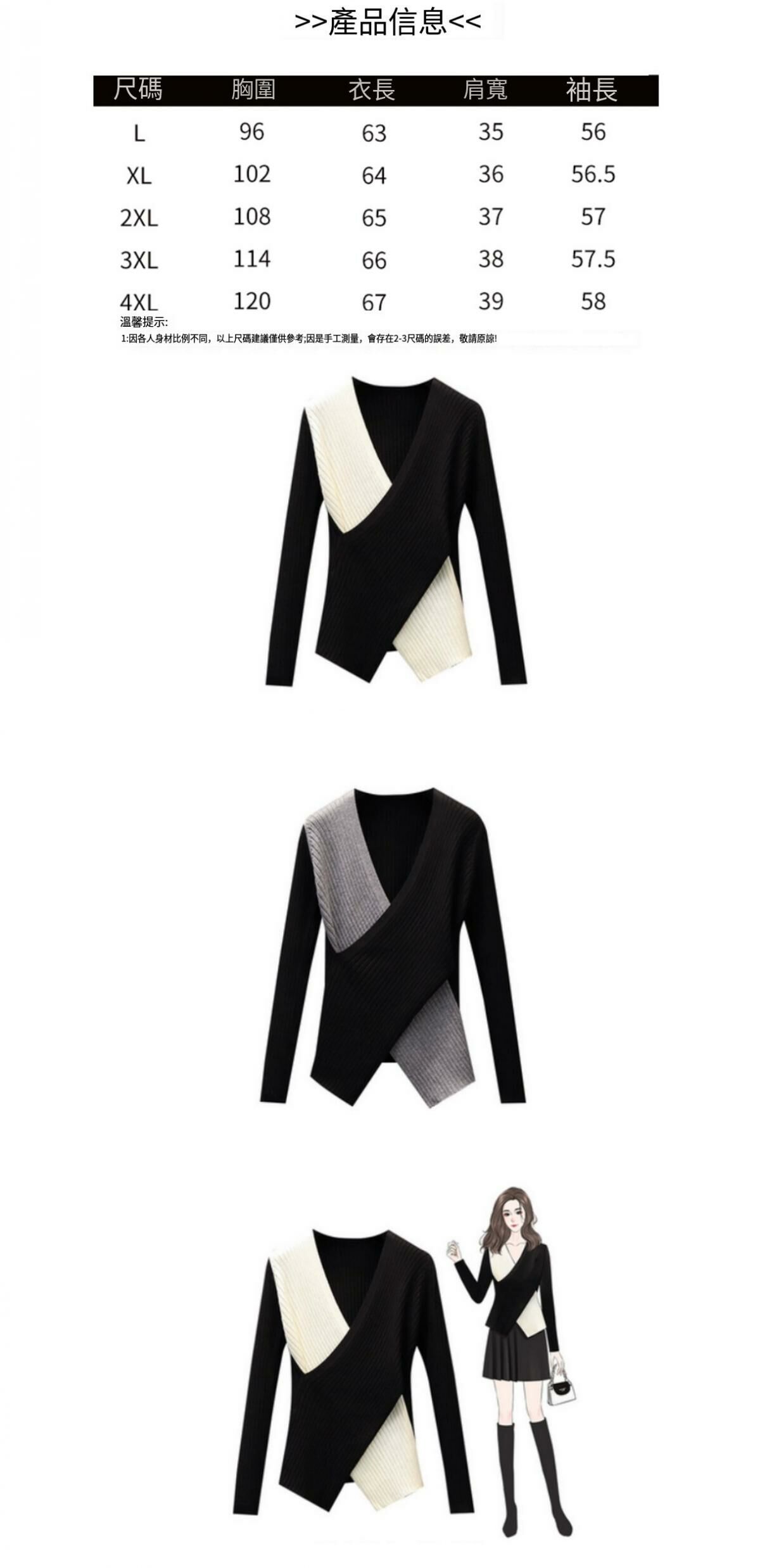 熱賣開叉V領針織衫【黑拼灰色】【L-4XL碼】(下單後請聯絡客服確認發貨尺碼)