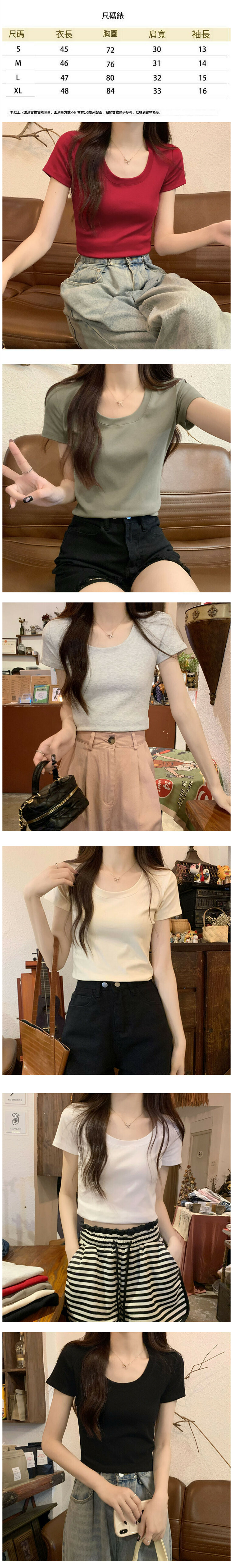 熱賣小U領鎖骨短款T恤【軍綠色】【S-XL碼】(下單後請聯絡客服確認發貨尺碼)