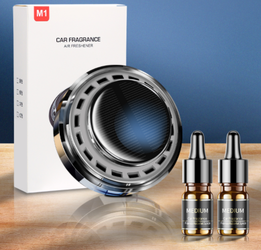 熱賣太陽能香薰香水車內飾品擺件持久淡香加1瓶古龍精油1瓶桂花精油(灰色)