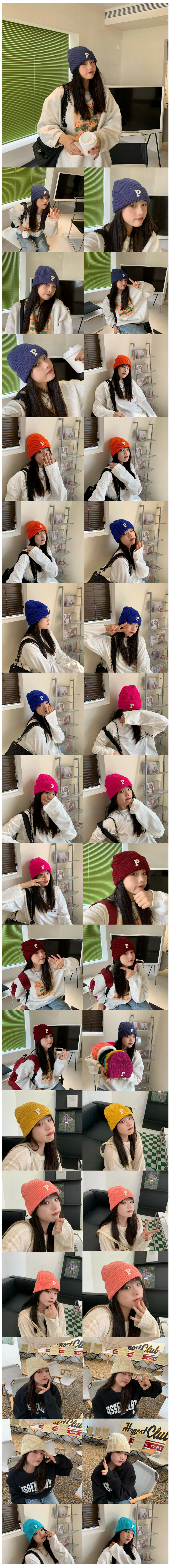 熱賣純色字母毛線帽女保暖針織冷帽護耳帽子((54-58cm)白色 P字母)