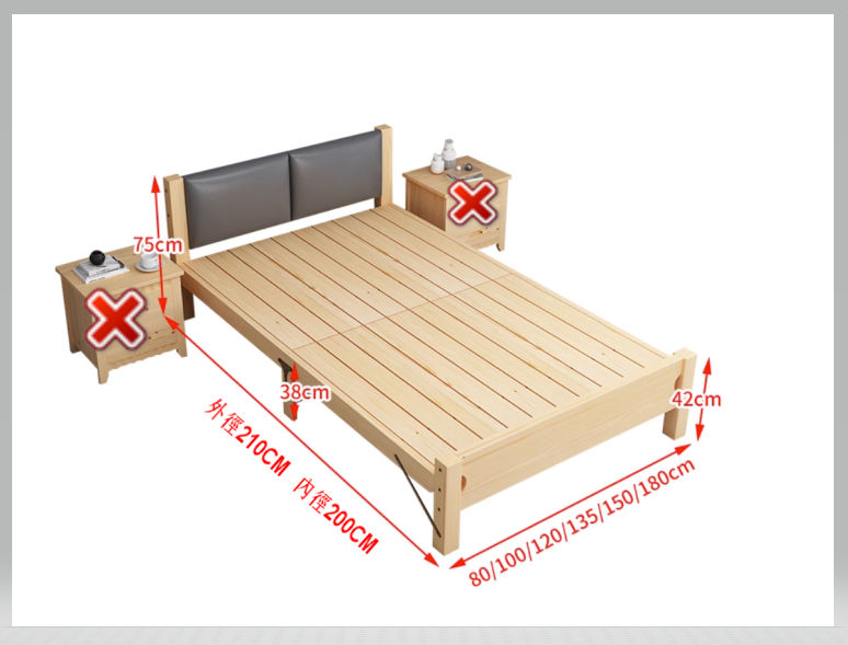 熱賣實木床(灰白軟包裸床(加强10根龍骨)可折疊1500mm*2000mm