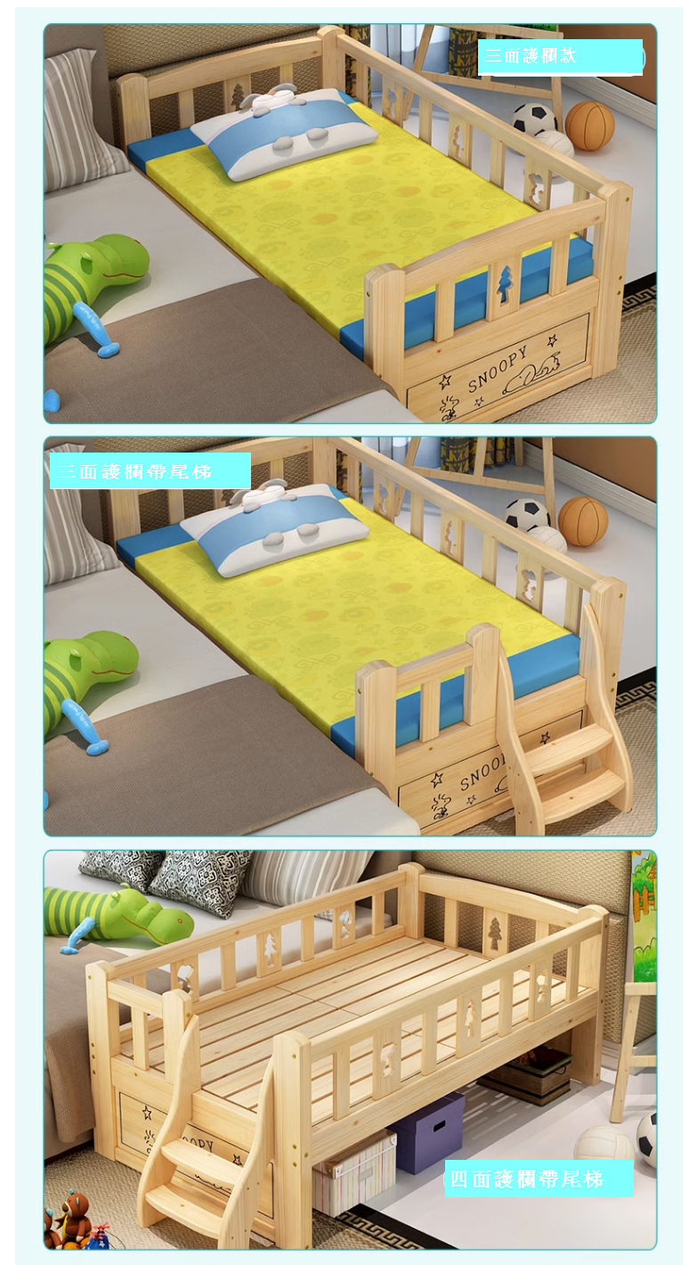 熱賣實木兒童床(180*100*40三面護欄)帶儲物箱