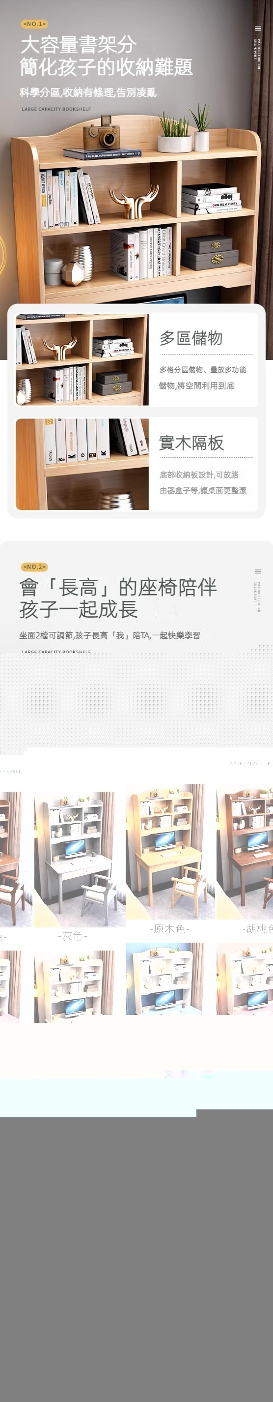 熱賣實木書桌書櫃書架一體書桌 電腦桌(藍色單桌+B扶手椅)(尺寸:90*60*180cm)