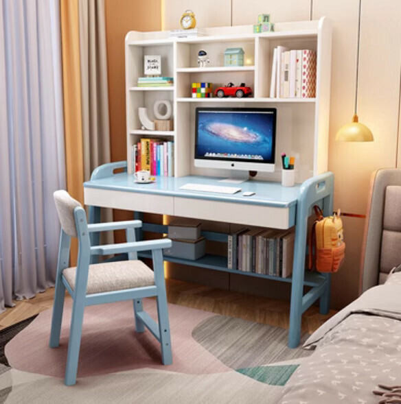 熱賣實木書桌書架一體寫字桌 電腦桌(胡桃色書桌+B扶手椅)(尺寸:100*60*155cm)