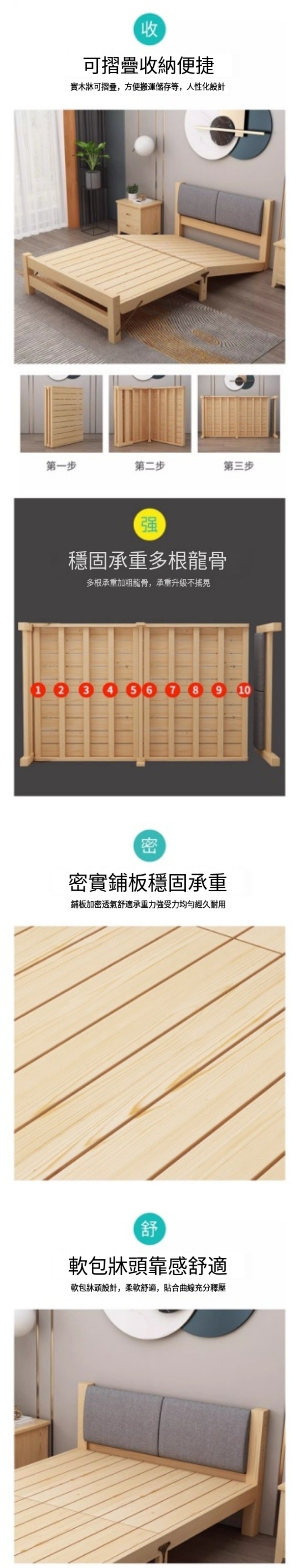 熱賣實木折疊床(裸床+椰棕床墊+軟包120CM*200CM)