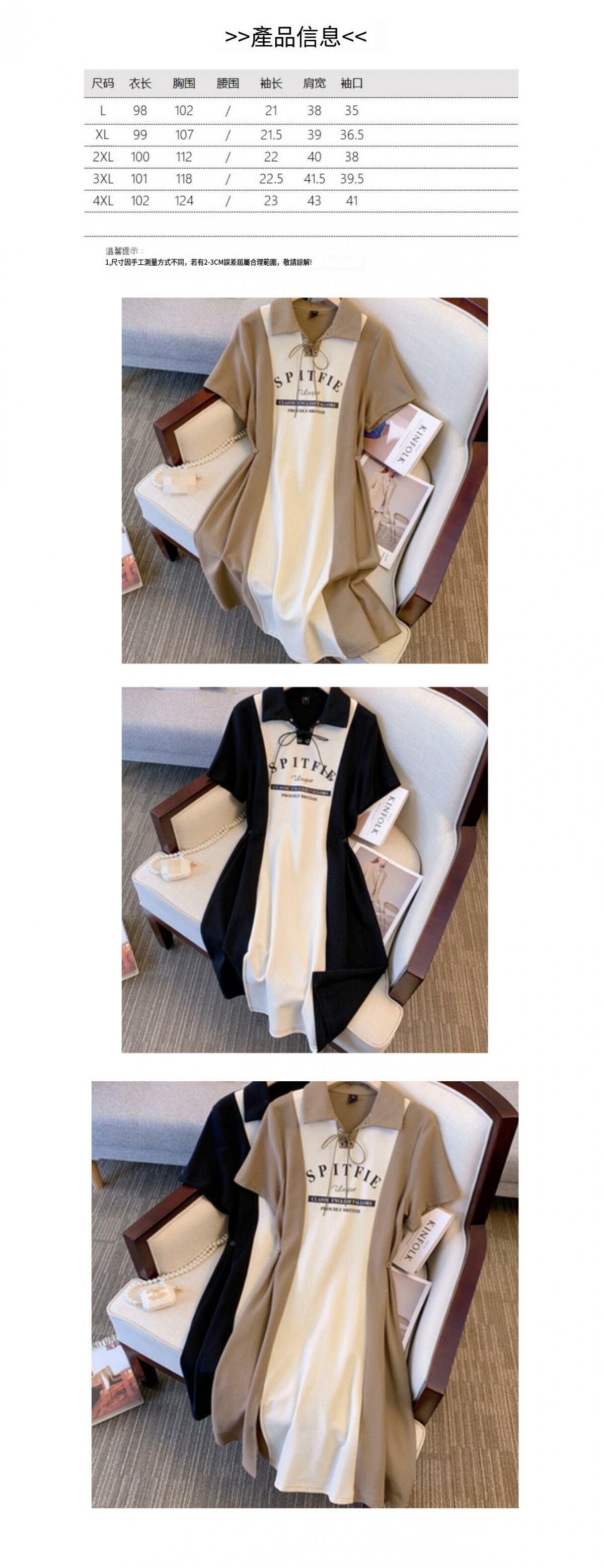 熱賣拼接polo領連衣裙【黑色】【L-4XL碼】(下單後請聯絡客服確認發貨尺碼)
